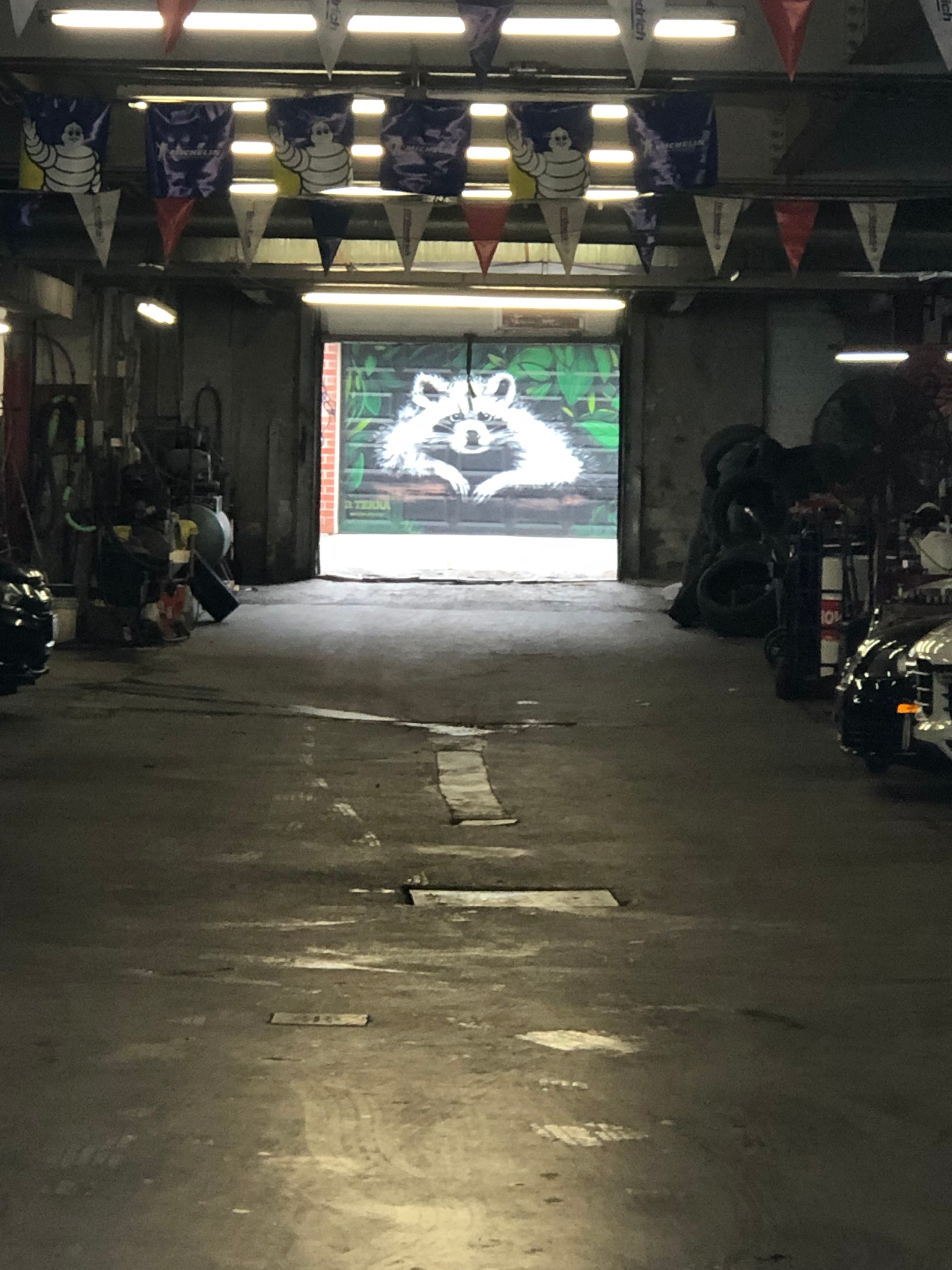 Once in the lane, another mechanic mentioned that a neighbour had paid to have the three images painted on adjacent garage doors, “To tidy up the lane.”