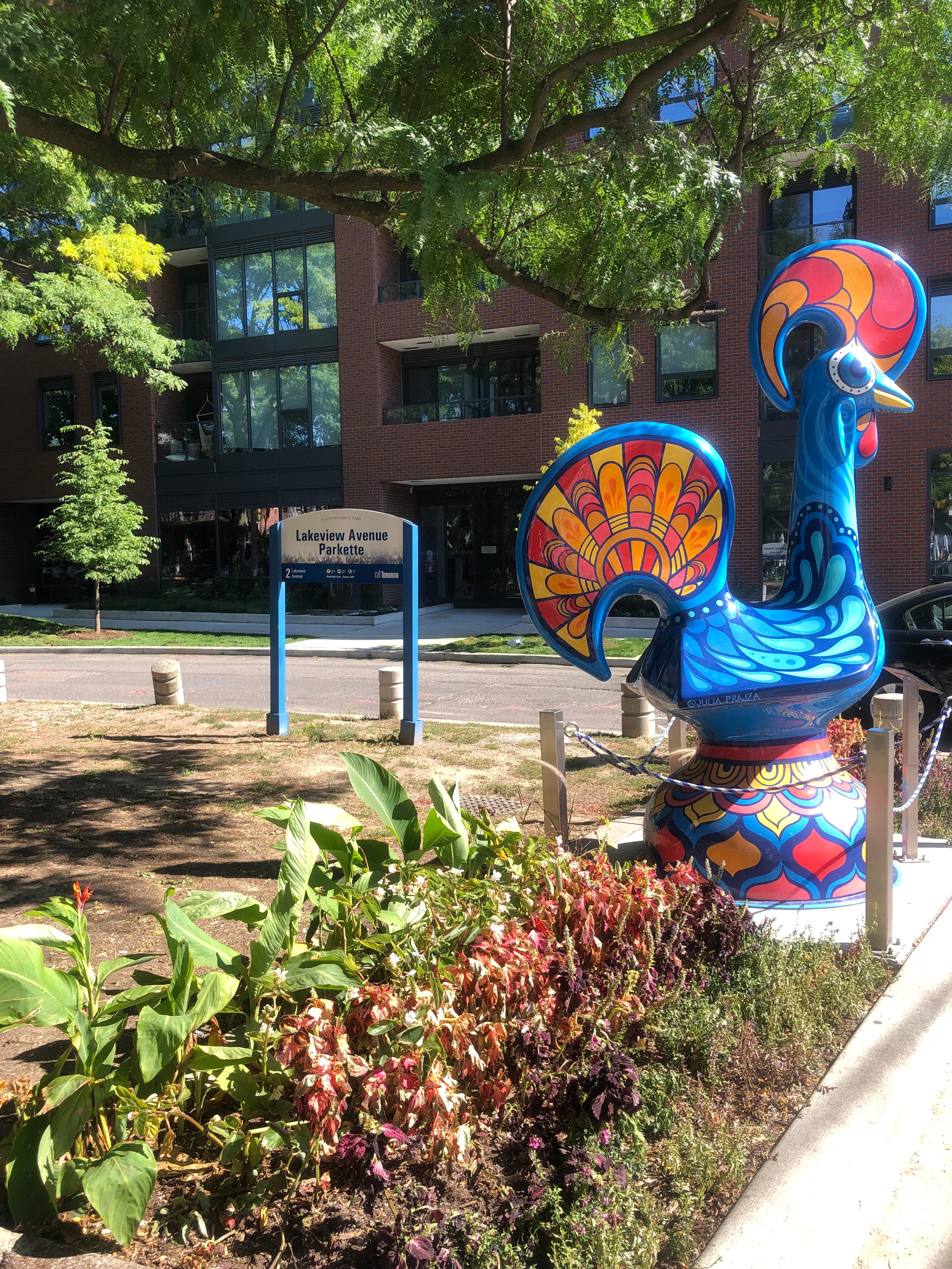 A friend recently came to visit, and did not know the street where I lived. Of course, I could have just given her the address. But isn’t it a lot more fun to make a date for a rendezvous near a unique landmark? This marvellous piece of art celebrates the neighbourhood’s history as Little Portugal: these stylized chickens are everywhere, so why not have a huge, crazily painted one?